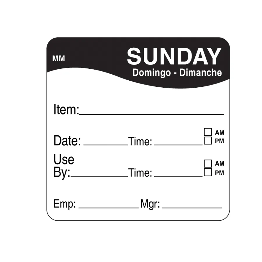 DayMark Label Sunday Removable Square 51mm - pack size 1