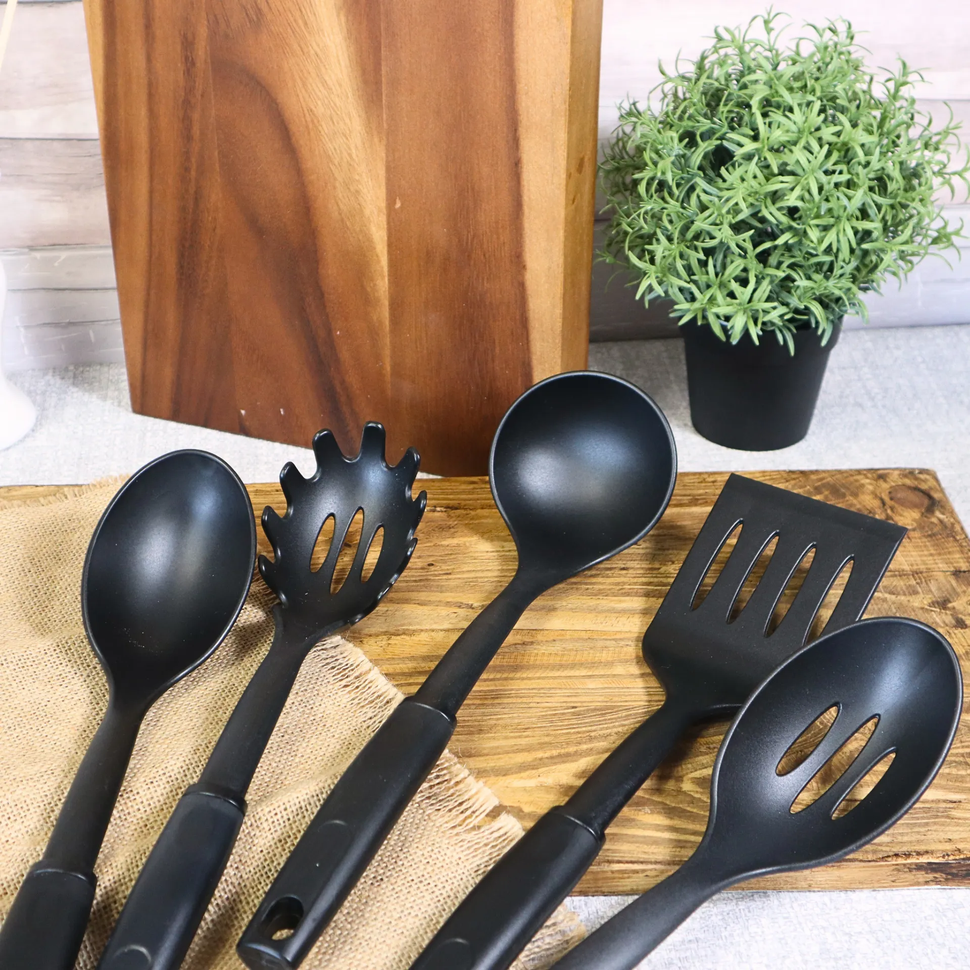 Eco-Friendly Antibacterial Heat Resistant Black Slotted Turner 33.32cm