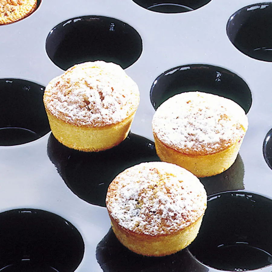 Suitable for all types of oven , Temp. Range -40°c to +300°c , Can be used up to 3000 times , Easy removal of product , Range: Flexiplan, Type: Moulds, Material: Silicone, Product Type: Muffin Moulds, Style: 24 Indents, Finish: Non Stick