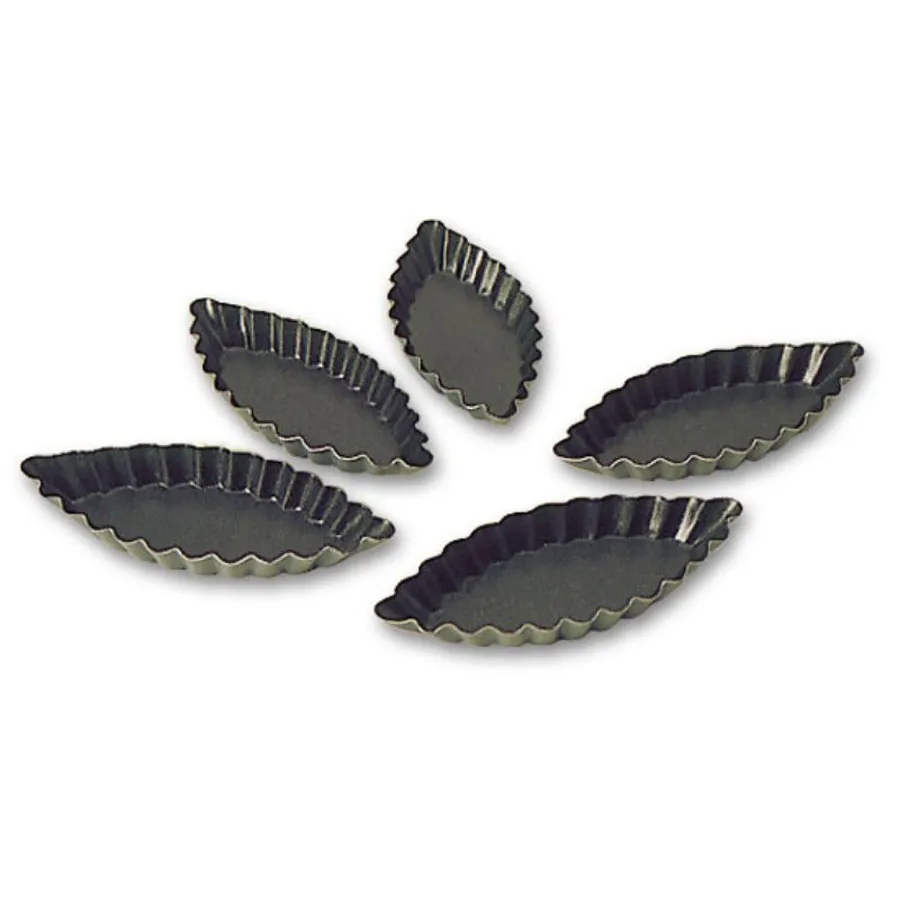 Easy removal of cakes and pastry; no greasing necessary , Thinness of moulds allows dough to colour nicely during baking , Type: Moulds, Product Type: Boat Moulds, Style: Fluted, Finish: Non Stick