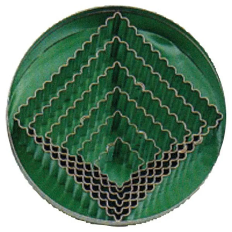 • Square Fluted Pastry Cutter Tinplate 2.3 - 8.5cm 6 Piece Complete With Tin - pack size 1