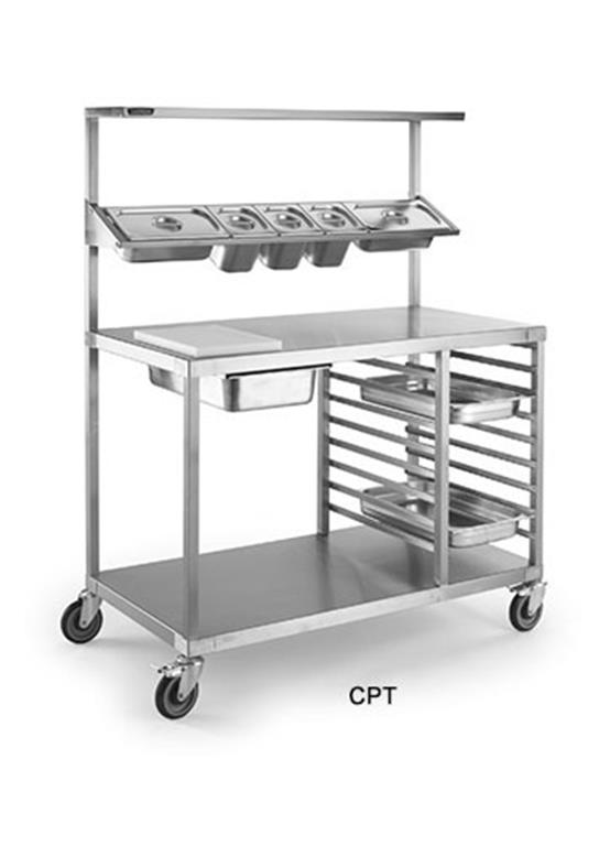 Designed to make life much easier for the busy chef. Keep everything all in one place when you're preparing your veg and salad for service with this solidly constructed work table providing a working height of 900mm.  The unit comes complete with a bank of runners and chopping block, garnish rail and overshelf.