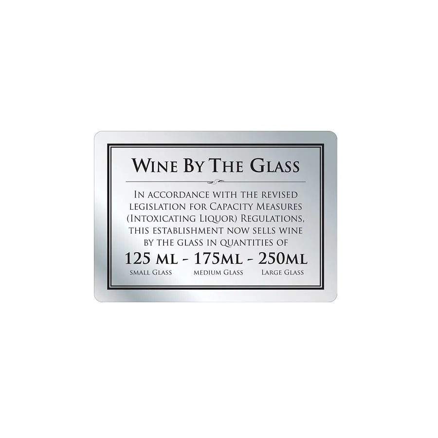 Mileta Silver Aluminium Rectangle Sign - Wine By The Glass 125ml, 175ml & 250ml 21 x 14.8cm - pack size 1