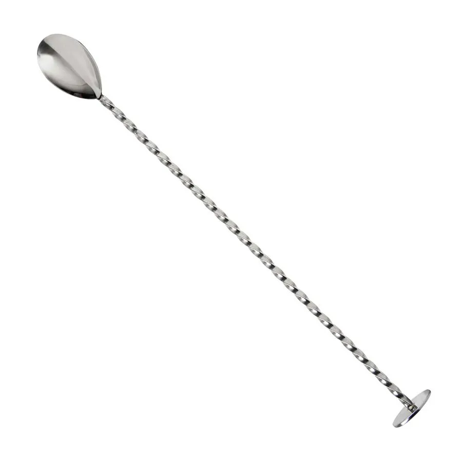 Classic European style bar spoon, Disc end for gentle muddling and layering drinks, Twisted stem for layering drinks, Made from premium polished 18/8 Japanese steel, High level of corrosion resistance, Dishwasher safe , Type: Mixing Spoons, Colour: Silver, Material: Steel, Length: 27 cm