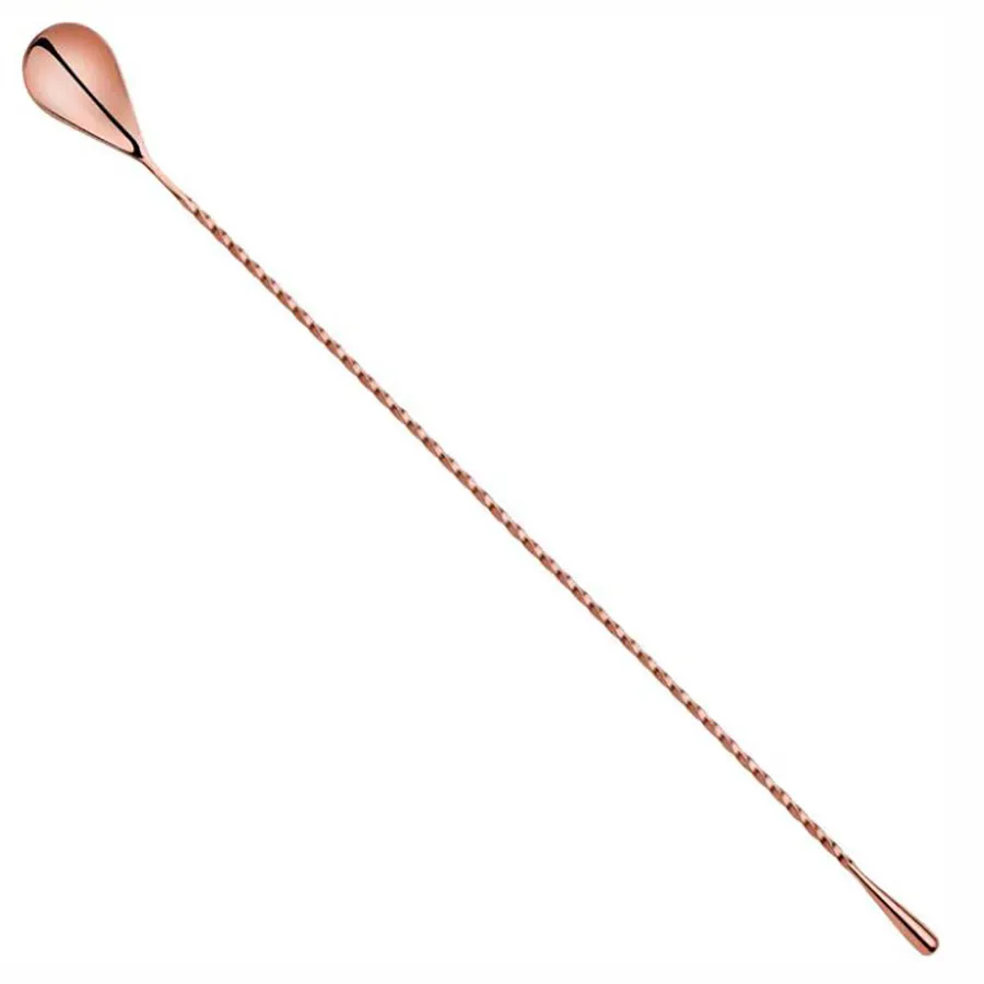 Twisted stem for layering drinks, Mirror finish teardrop shape tip, Head gives approximate 5ml measure, Premium polished shine, High level of corrosion resistance , Outlasts standard barware, Handwash only, Type: Mixing Spoons, Colour: Copper, Material: 18/8 Copper Plated Stainless Steel