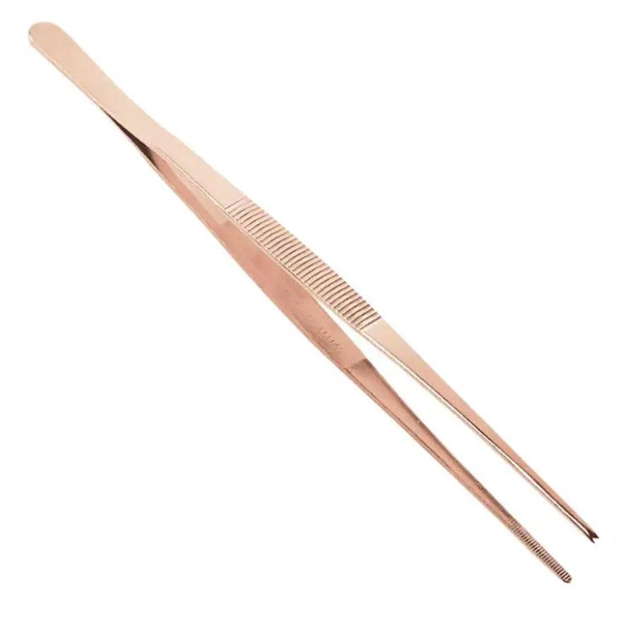 Long tweezers for precise garnish placement , Grooved tips for greater grip on delicate garnishes, Grooved finger grip areas on both sides, Made from high grade Japanese steel , Polished copper plated finish , High corrosion resistance to outlast standard barware , Handwash only , Type: Tweezers, Colour: Copper, Material: 18/8 Copper Plated Stainless Steel