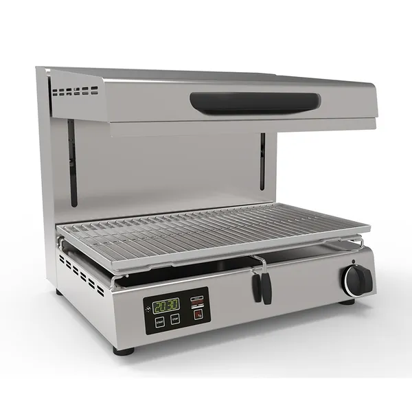 Blue Seal Salamander with self balancing adjustable grill height, 20 seconds to reach maximum temperature from ignition, max 5 seconds in operation Energy saving with ultra quick heating from idle & two independent cooking areas