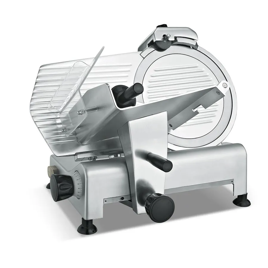 Aluminium housing , 420 watt motor, 0-12mm slice adjustment for precision slicing , Built-in blade sharpener , Safety locking system , 300mm dia blade size, Type: Medium Duty Slicer, Product Type: Blade Diameter 300mm, Style: Adjustment 0 - 12mm, Power Type: Electric, Power: 420 watt, Plug In: Yes, Electrical Phasing: Single Phase