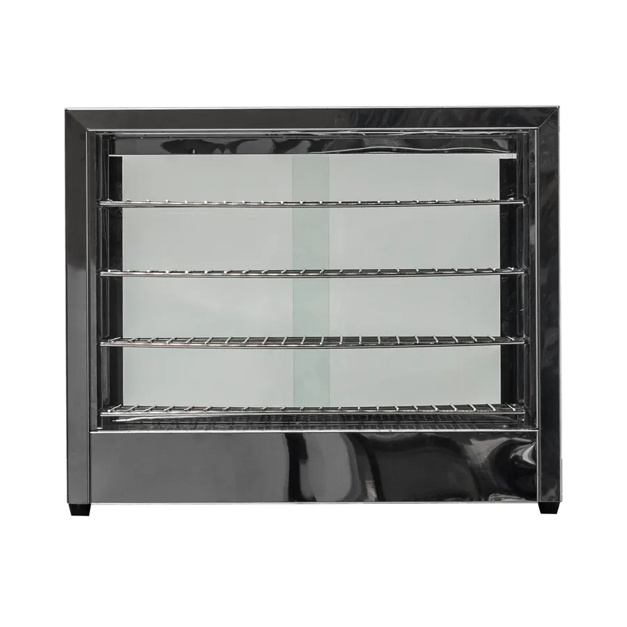 Stainless steel construction with toughened glass, Sliding glass doors to rear and fixed glass panel to front, Variable temperature control 30c – 90c, Visible temperature display, Removable crumb try, Supplied with 4 removable shelves (91mm spacing), Range: Food Holders & Display, Material: Stainless Steel, Power Type: Electric, Power: 1 kw, Plug In: Yes, Electrical Phasing: Single Phase