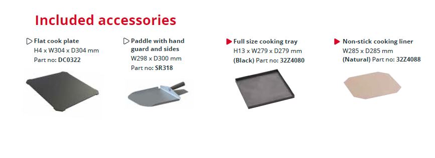 Accessories included: • Solid cookplate • Cook plate liner • Solid base basket • Guarded paddle with supporting side walls