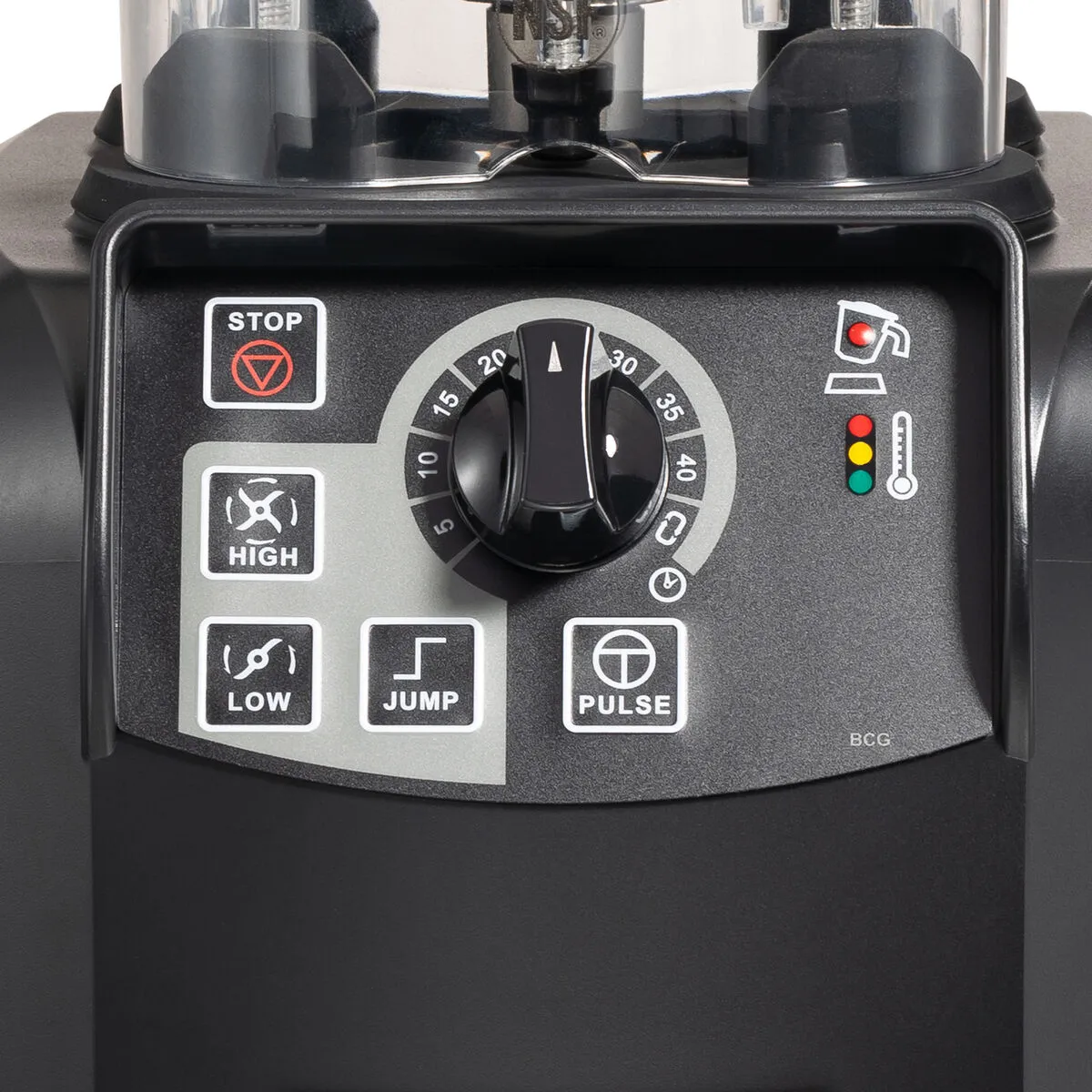 The 2 speeds, pulse, jump cycle and timer with auto shutoff offer precision blending for various drinks. The jump cycle starts at a low speed to minimize noise, then switches to high to achieve a super-creamy drink profile. The timer turns the blender off after the set time has elapsed, allowing operators to do other tasks.