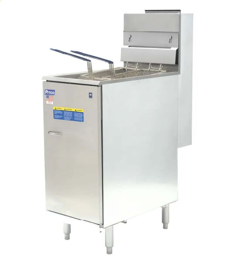 The up-to-date- Pitco Economy fryer single tank fryer is suitable for medium volume of frying. It has a standing pilot light design which provides a ready flame when heat is required. The cabinet front and door are constructed of stainless steel with galvanized sides and back. The thermostat maintains selected temperature automatically between 93C and 190C. An integrated gas control valve acts as a manual and pilot valve, gas filter, pressure regulator, and automatic main valve. Also the basket hanger is removable for easy cleaning.