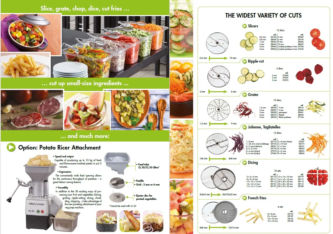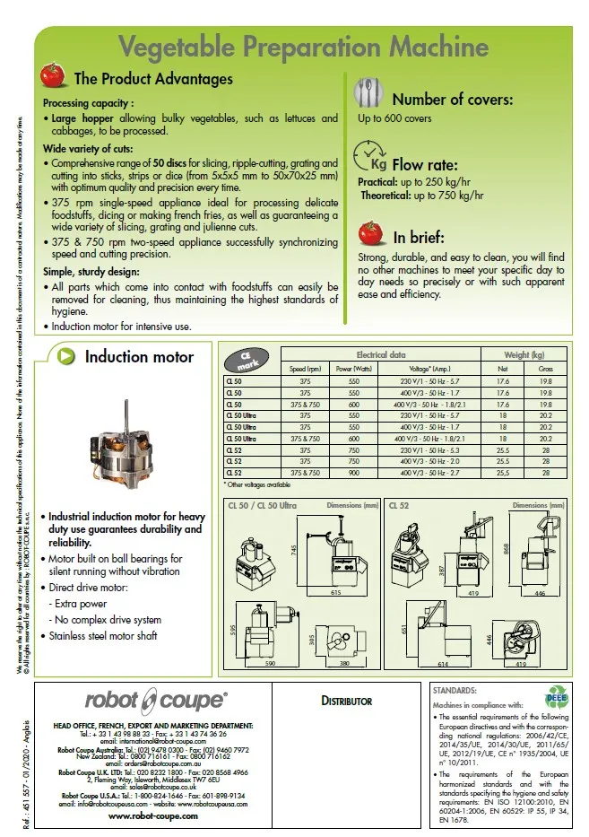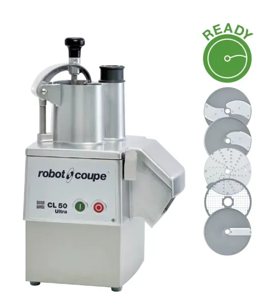 The Robot Coupe CL50 Ultra single speed veg prep machine is a tough but easy to operate vegetable preparation machine which will save so much time in getting your kitchen ready for service. Now with the new Robot Coupe French Fry Solution you can produce up to 25kg of chips in just 4 minutes