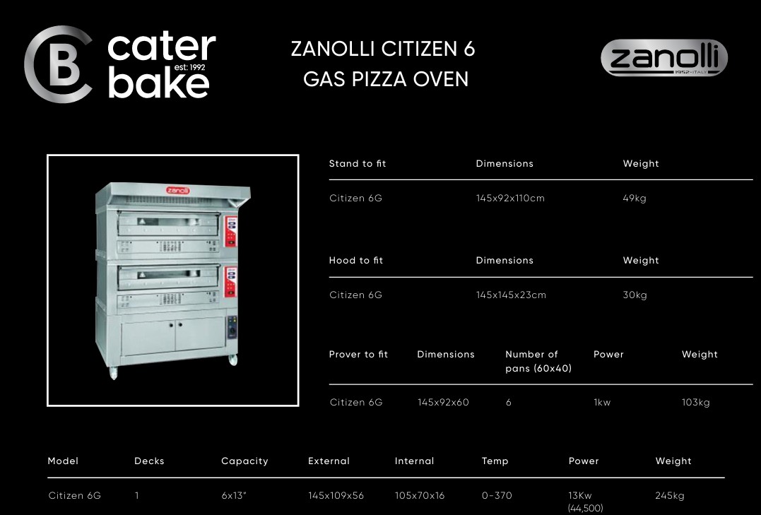 • Gas Pizza Oven for 6 x 12" Pizza the Zanolli Citizen BCIT6Holds 6 x 13" pizzas