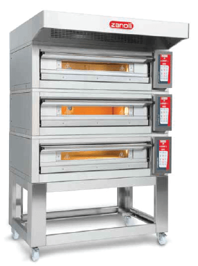 This gas single deck pizza oven by the famous Zanolli brand is stackable and can be fitted with a hood and a prover. Armour plated elements are located near the door to compensate for heat loss and ensures even distribution
