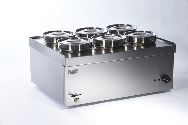 Excellent for keeping foods at ready-to-serve temperatures, the Parry NPWB electric wet bain maries are ideal for mobile caterers, restaurants, cafés and pubs. Made from high grade stainless steel and featuring a front mounted easy-drain valve, the unit is user-friendly and effortless to clean. Temperature is regulated by the thermostat control dial, and the unit is supplied with stainless steel pots and lids as standard