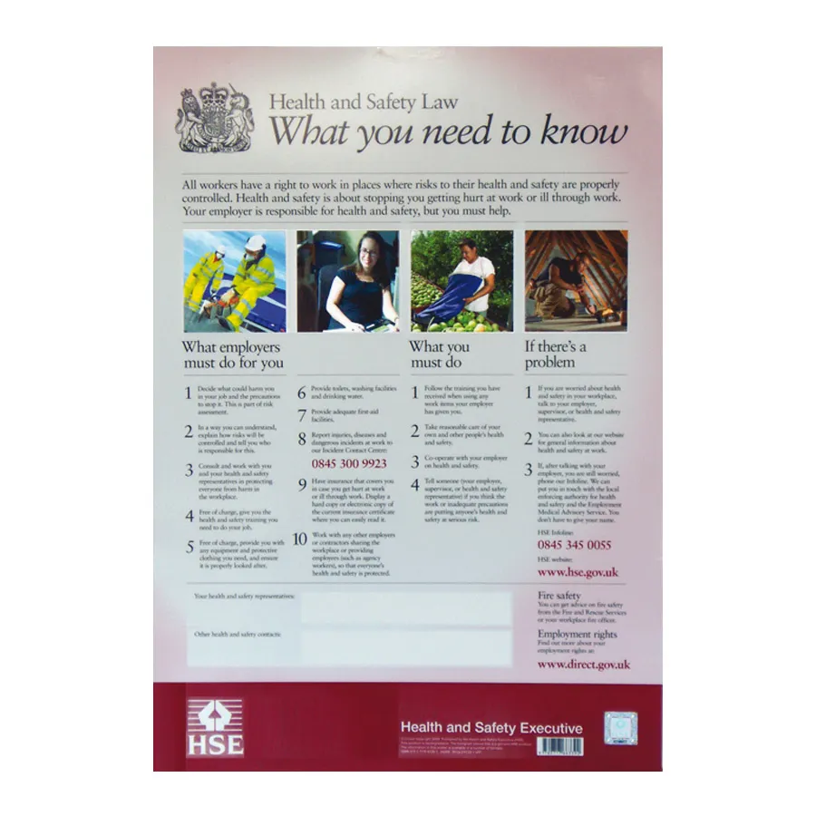 Full colour , Encapsulated , Easy to read format , Legal requirement , Type: Safety Signs, Product Type: Health & Safety Law Poster