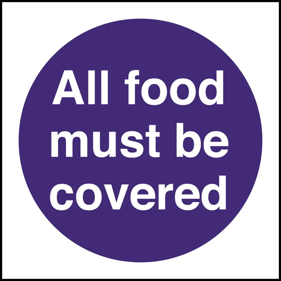 Mileta Kitchen Food Safety Sign Self Adhesive Vinyl 100 x 100mm - All Food Must Be Covered