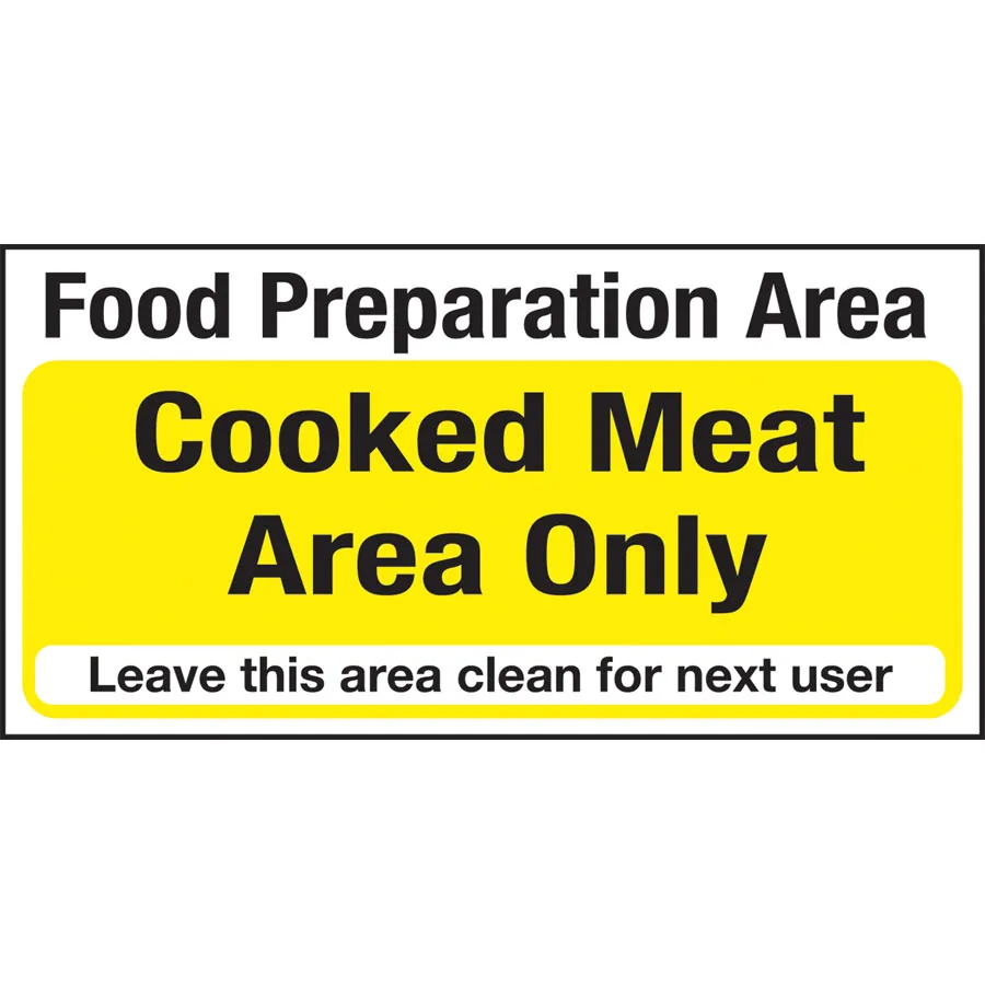 Mileta Kitchen Food Safety Sign Self Adhesive Vinyl 100 x 200mm - Cooked Meat Area Only