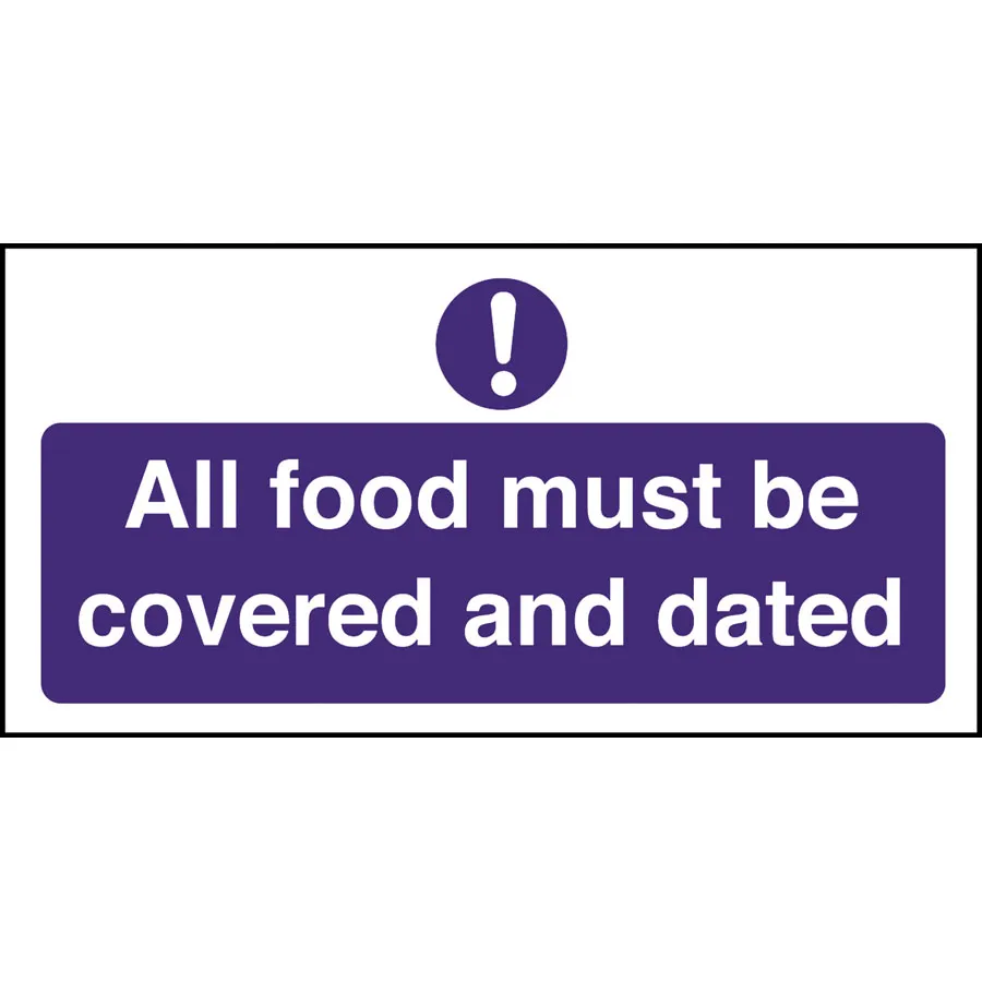Mileta Kitchen Food Safety Sign Self Adhesive Vinyl 100 x 200mm - Food Must Be Covered