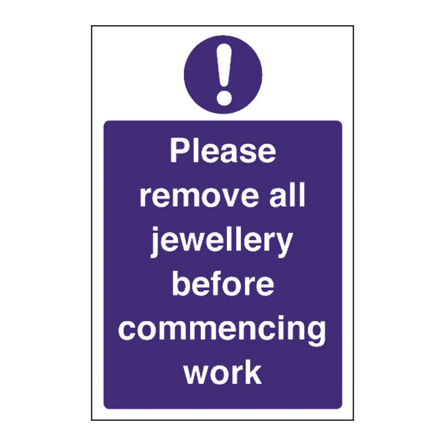 Mileta Kitchen Food Safety Sign Self Adhesive Vinyl 300 x 200mm - Remove Jewellery