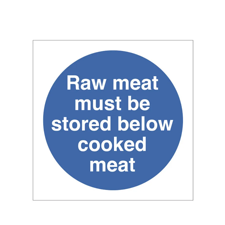 Mileta Safety Sign Raw Meat Must Be Stored Below Cooked Meat Storage Label