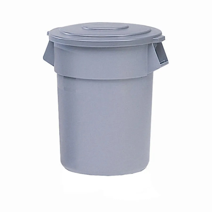 Reinforced rims for added strength , Built-in handles and anti-jam nesting , Double-ribbed base for increased stability and dragging capacity , Range: Brute, Type: Round Containers, Colour: Grey, Material: Polyethylene, Capacity: 208.2 ltr, Diameter: 67.30 cm