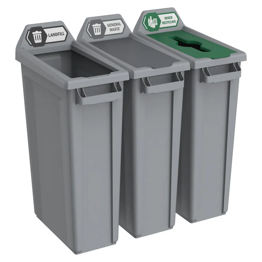 • Trust Recycling Station 3 Stream Landfill/General/Mixed Grey HDPE 87ltr 50.7x82x89.9cm - pack size 1