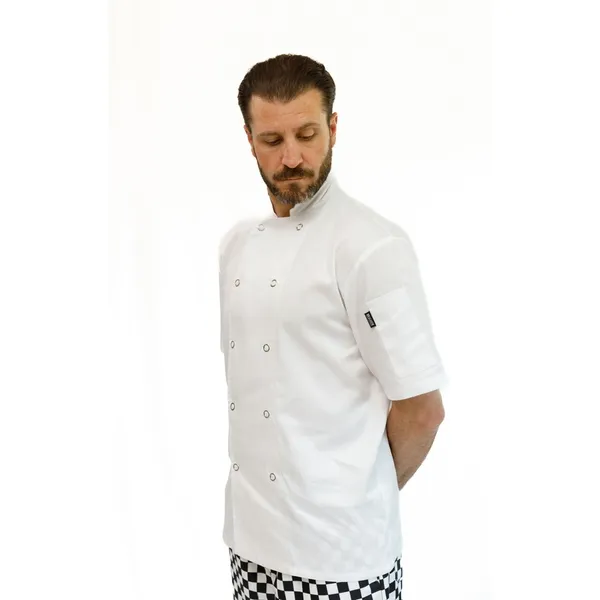Every day short sleeved chefs jacket with pen pocket and button fastening and mesh back panel
