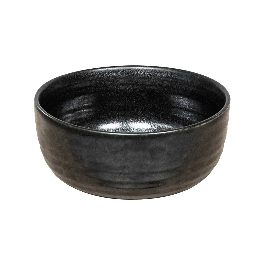 Artisan Neuvell Andromeda 12cm Round Bowl - with a satin finish in a shimmering black reactive glaze, Andromeda provides provides a dramatic contrasting background for stunning presentation. The 12cm Round Bowl is perfect for serving side dishes and salads, maximising presentation whilst controlling portion size. The natural variations of the glaze, emphasise the studio feel of Artisan Andromeda