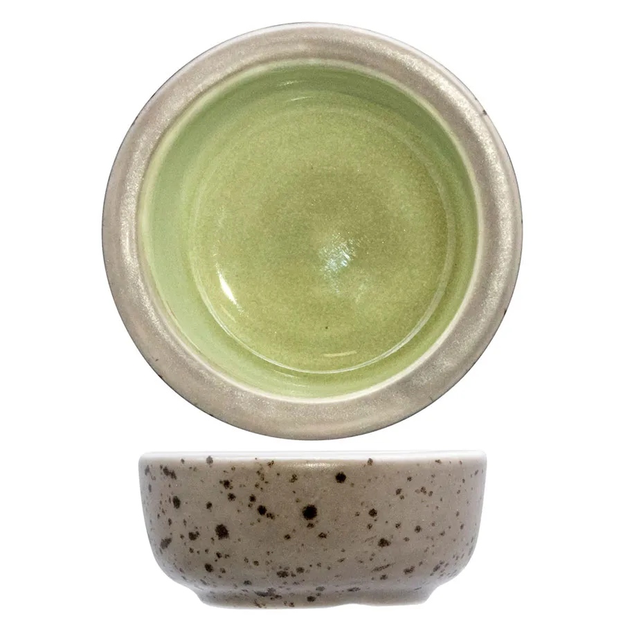 FFF-BL212, Genuine Vitrified Durable Stoneware, Edge Chip Guarantee, Dishwasher Safe, Microwave Safe, Thermal Shock Resistant, Lead & Cadmium Free, Heat & Chill Retention, Glaze Damage Resistance, Range: Elm, Type: Bowls, Colour: Green, Material: Vitrified Stoneware, Shape: Round, Capacity: 4.25 cl, Capacity: 1.5 oz, Diameter: 7 cm