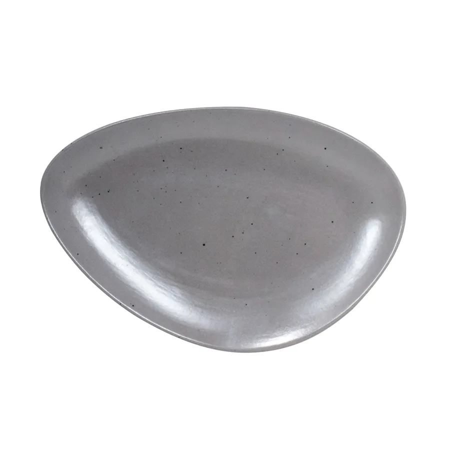 The Artisan Pebble 21cm Island plate, with a subtle speckle and light grey finish, is the ideal background for stunning presentation. The organic, triangle shape with soft sloping sides adds a new dimension to the table setting creating the perfect piece for showcasing your premium menu