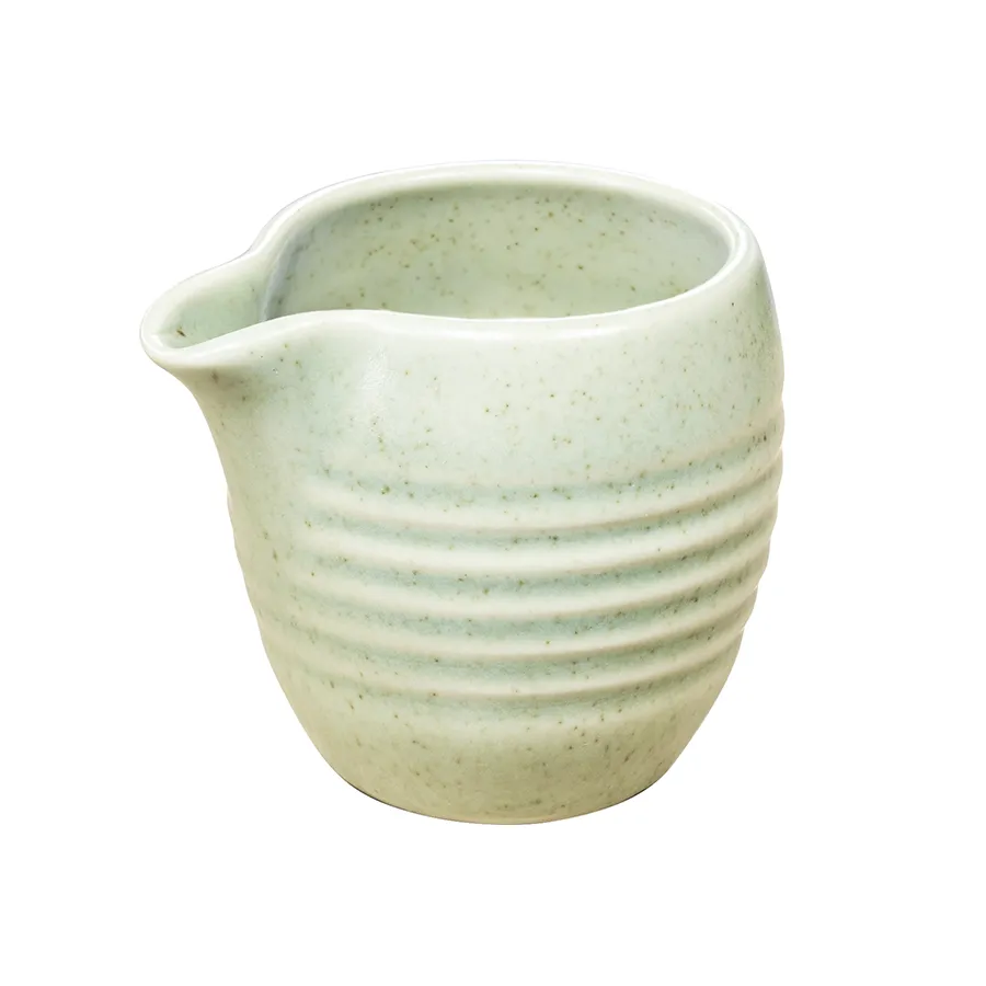 Artisan Neuvell Serene 2.5oz Jug - with a satin finish glaze in pale sage and with reactive rust flecks, Serene provides a soft, natural background which compliments stunning presentation. The 2.5oz Jug is perfect for serving sauces to complement meals they are served with. The natural variations of the glaze, emphasise the studio feel of Artisan Serene