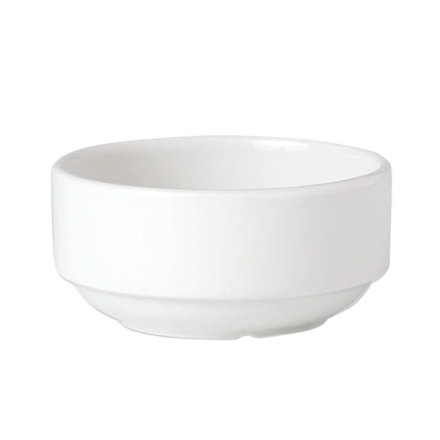 FFF-B6639, Dishwasher Safe, Microwave Safe, Freezer Safe, Thermal Shock Resistant, Lead & Cadmium Free, Stackability, Heat & Chill Retention, Glaze Damage Resistance, Range: Simplicity, Type: Soup Dishes, Colour: White, Product Type: Unhandled, Material: Vitrified China, Shape: Round, Capacity: 28.5 cl, Capacity: 10 oz, Style: Stackable