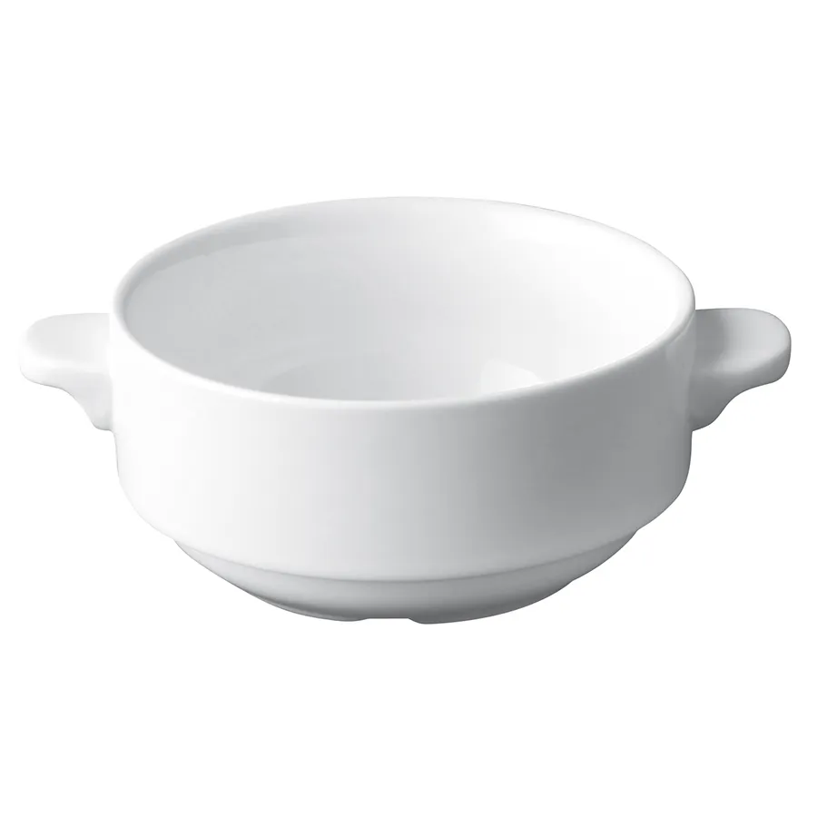 Superwhite Porcelain Round Lugged Stacking Soup Bowl 28cl 10oz