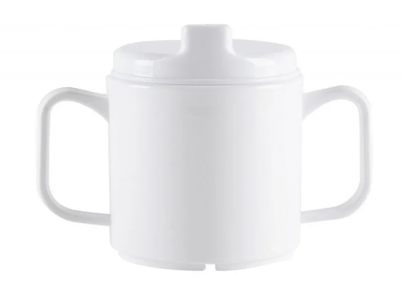 Ideal for people who need extra stability when drinking, this two handled bowl will definitely help. It is suitable for hot and cold drinks and is microwave safe for re-heating.  There is a lid available as well