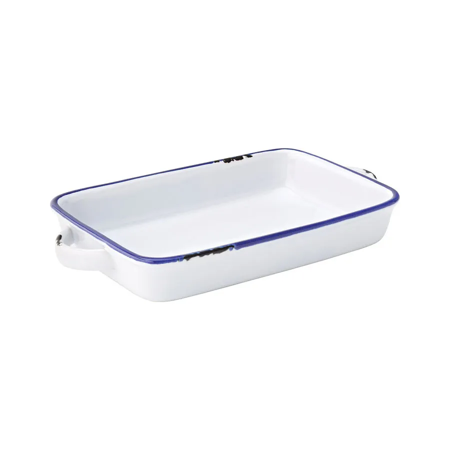 FFF-EC950, Decorated stoneware, Designed to give the impression of classic rimmed enamel tableware , Range: Avebury Blue, Type: Other Dishes, Colour: Multi, Product Type: Pie Dish, Material: Stoneware, Shape: Rectangle, Length: 25 cm