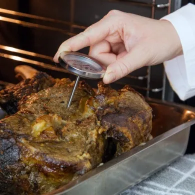 Insert the thermometer stem into the thickest part of the meat or poultry for quick and easy reading