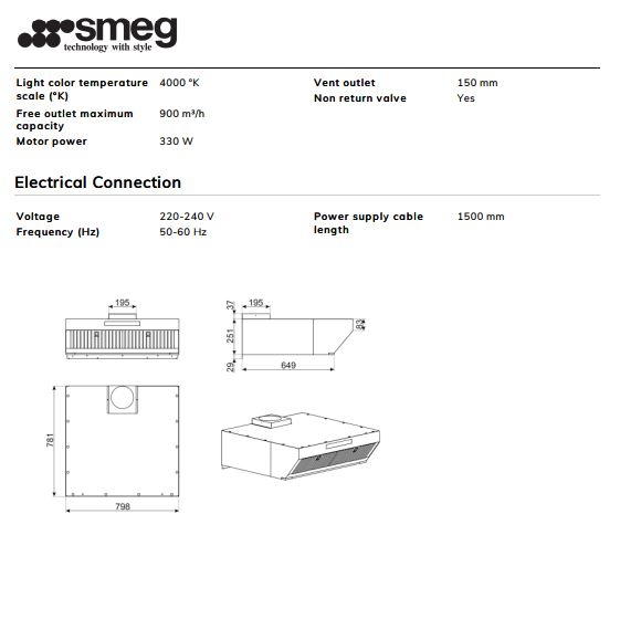 Condense Exhaust Hood for Smeg Alfa ALFA Oven Series