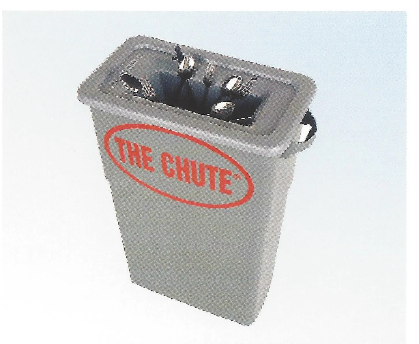 Cutlery loss prevention system, simply fit the Chute over your waste bin and it's powerful magnets will attract any cutlery accidentally directed into the bin. The chutes will attract most stainless steel cutlery as they contain ferrous metal. 18/8 and 18/10 stainless steel and gold plate cutlery only contains a small amount of ferrous metal and will not be attracted to the chutes magnets. Try your cutlery with a magnet to see if it will work. Fortunately, though most caterers use 18/0 which is perfect.