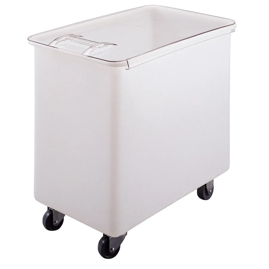 Heavy duty polycarbonate construction , Clear polycarbonate break-resistant lid for easy viewing of contents , Sloped two-piece lid allows easy access even when stored under a counter and facilitates cleaning , Special design enables spilled liquids to drain back off lid while protecting contents , Type: Bulk Storage Bins, Colour: White, Material: Polyethylene, Capacity: 161000 ml, Product Type: Slide Back Lid