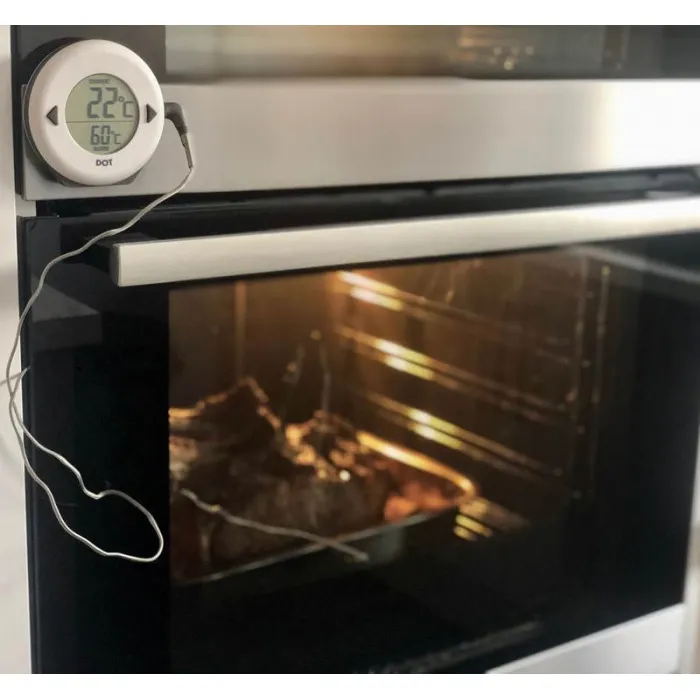 • the DOT digital oven thermometer has an alarm for monitoring food. Just set the thermometer to the temperature of your choice and the alarm will sound once the food reaches temperature.