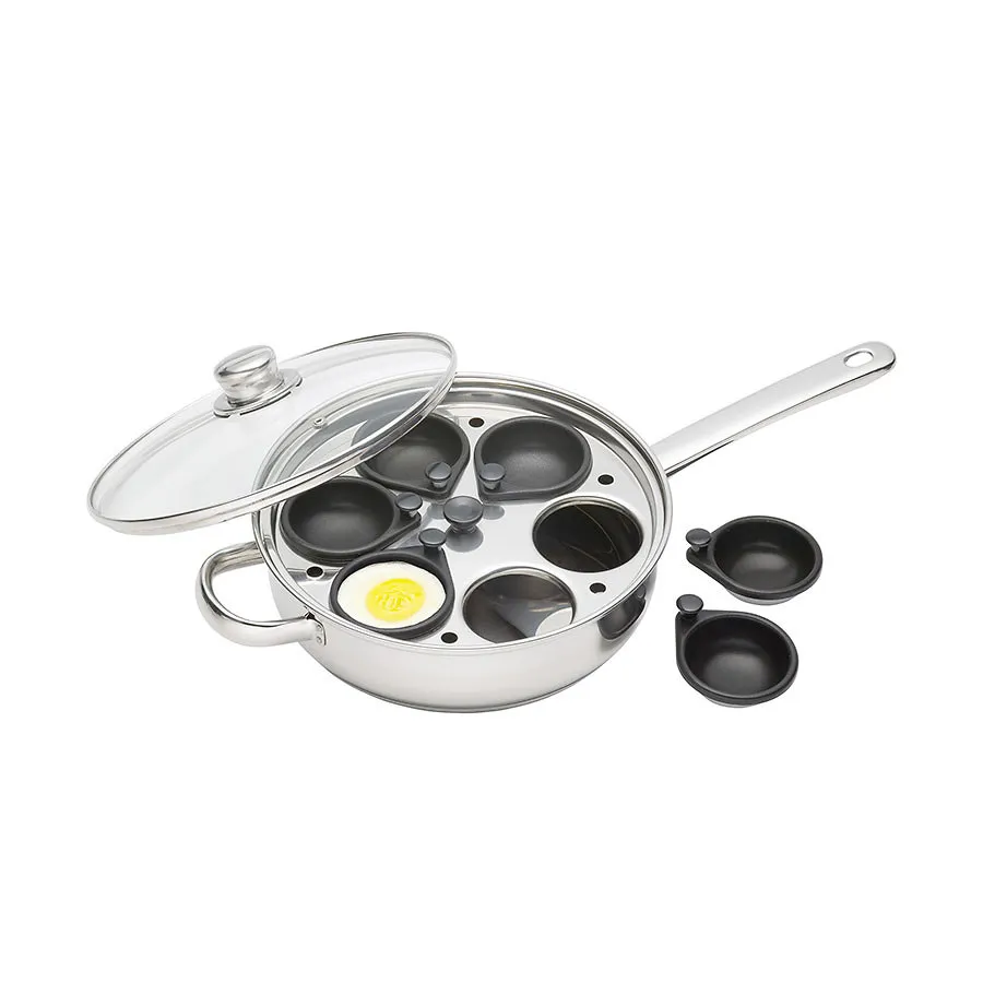 KitchenCraft Stainless Steel Six Hole Egg Poacher 28cm
