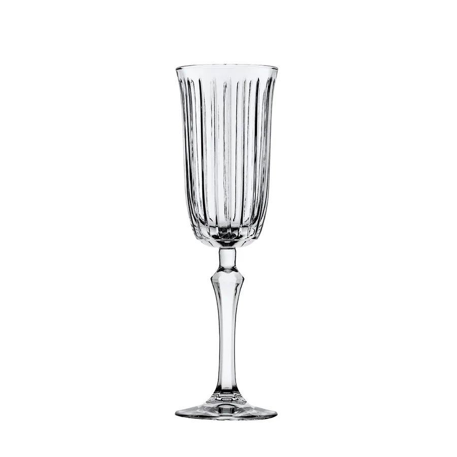 Faceted stems and bowls adorned with deep vertical lines, offering both visual and tactile appeal, Glasswasher safe, Range: Joy, Type: Flute, Colour: Clear, Material: Soda Lime, Diameter: 65 mm, Capacity: 17.5 cl, Capacity: 6 floz