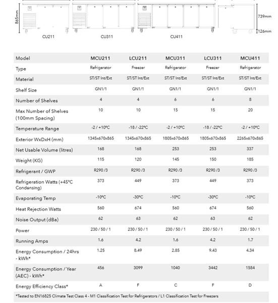 - MCU311 Fridge:-2/+4ºC - Energy Efficiency Class A