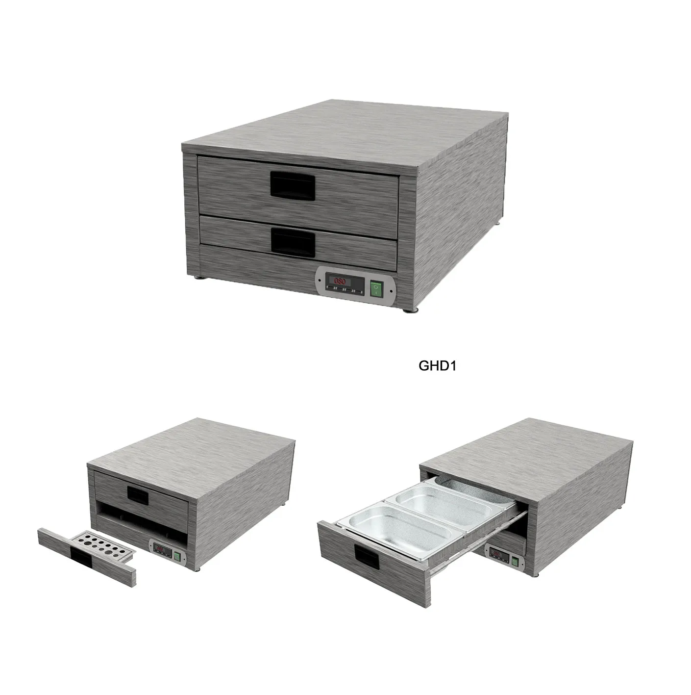 - GHD1 - 1 drawer 475w x 685d x 277h holding 3 x 1/3 gn pans included