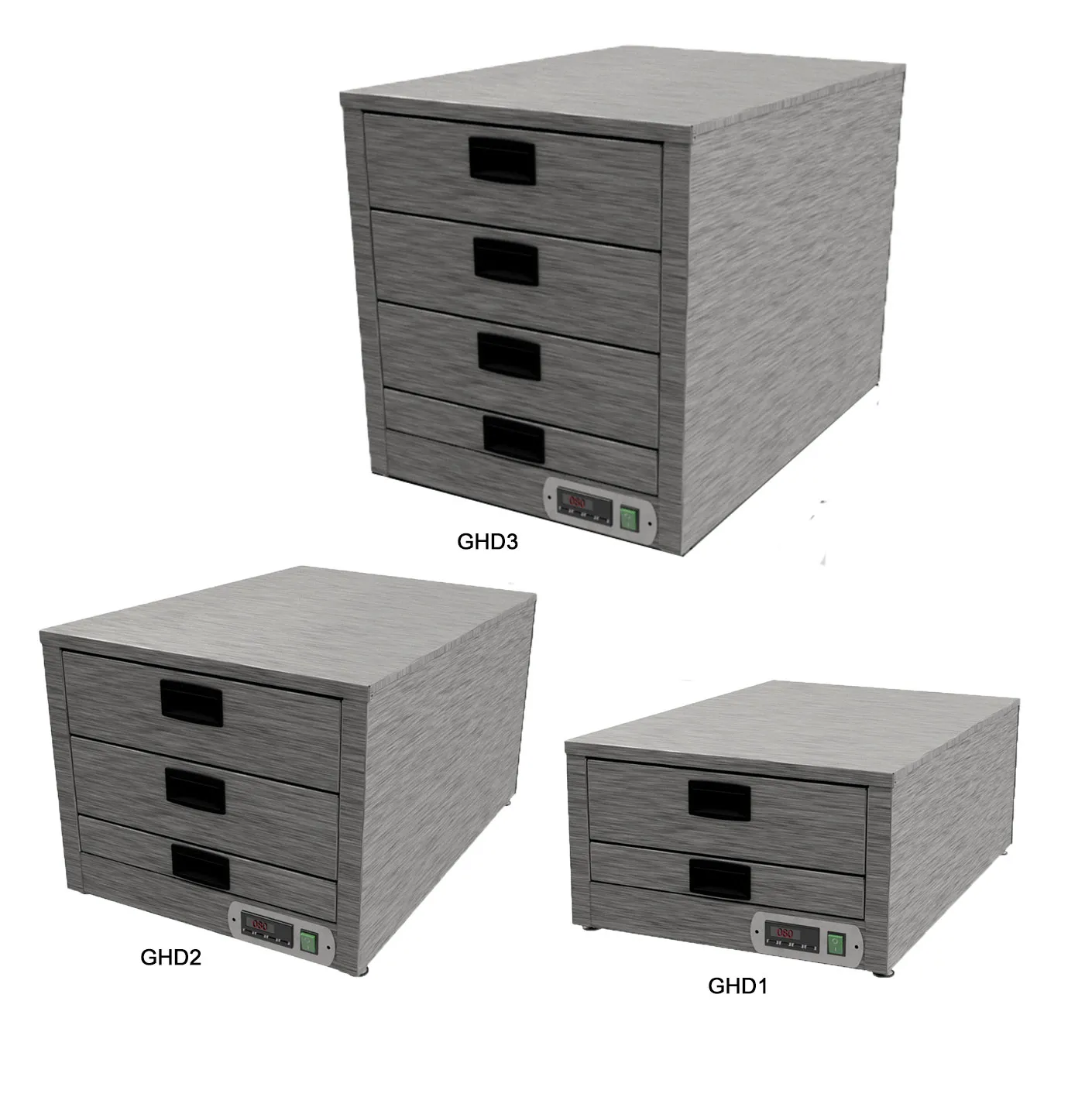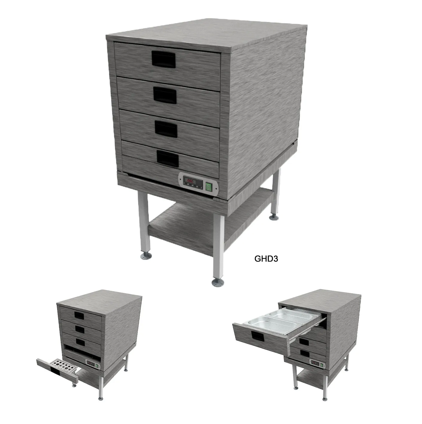 - GHD3 - 3 drawer model - 475w x 685d x 511h holding 7 x 1/3 gn pans included