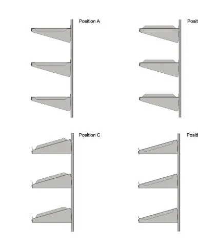 This shelving range is fully adjustable for height, one two or three tier, four positions and five lengths. These shelving units can also be set into sloping position.