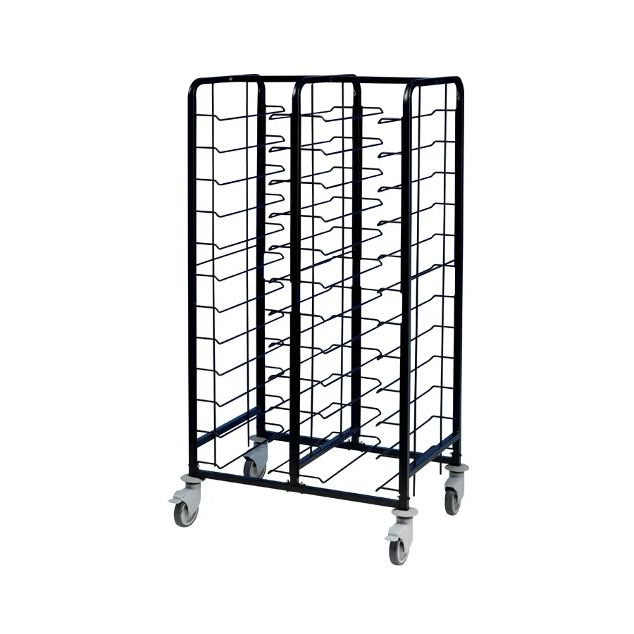 Black painted frame and wire tray slides, Fully welded construction - self assembly not required , Max. Tray size 530 x 370mm , Compatible tray sizes: 460 x 360mm / 480 x 370mm / 1/1 GN and fast food 350 x 270mm , 4 castors with bumpers - 2 braked , Type: Tray Clearing, Product Type: Compatable With 1/1 Gastronorm , Style: Black Painted Frame, Gastronorm Size: 1/1