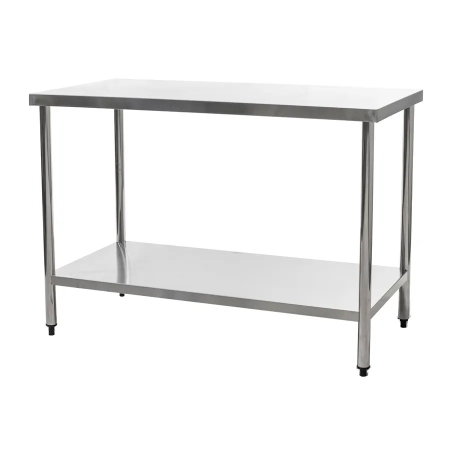 All stainless steel construction - including full-length stainless steel undershelf, Work surface at 900mm, Top - 201 Grade stainless steel, Frame - 201 Grade tubular stainless steel, Undershelf - 201 Grade stainless steel , Fitted with adjustable feet for on-site levelling, Castors available to purchase separately - order code HEF654, Supplied flat-packed - self assembly required, Range: Tabling, Type: Centre Tables, Material: Stainless Steel, Product Type: Supplied flat-packed - 28kg